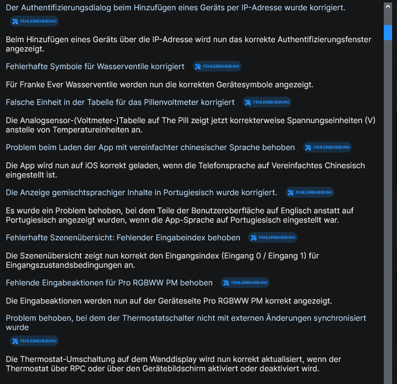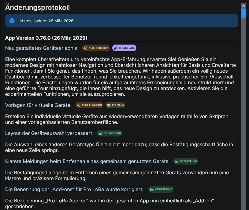 Changelog: Shelly App Version 3.76.0