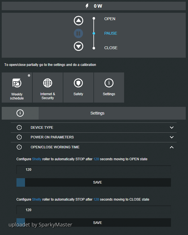 - Um nun für eine erfolgreiche Kalibrierung die OPEN/CLOSE WORKING TIME korrekt einzustellen, muss über das WebUI des Shelly die Laufzeit manuell eingestellt/korrigiert werden. (ein Dank an @EarMaster!)