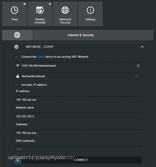 - Ermöglicht dem Shelly eine Verbindung zu einem verfügbaren WLAN-Netzwerk (Heimnetzwerk) herzustellen.