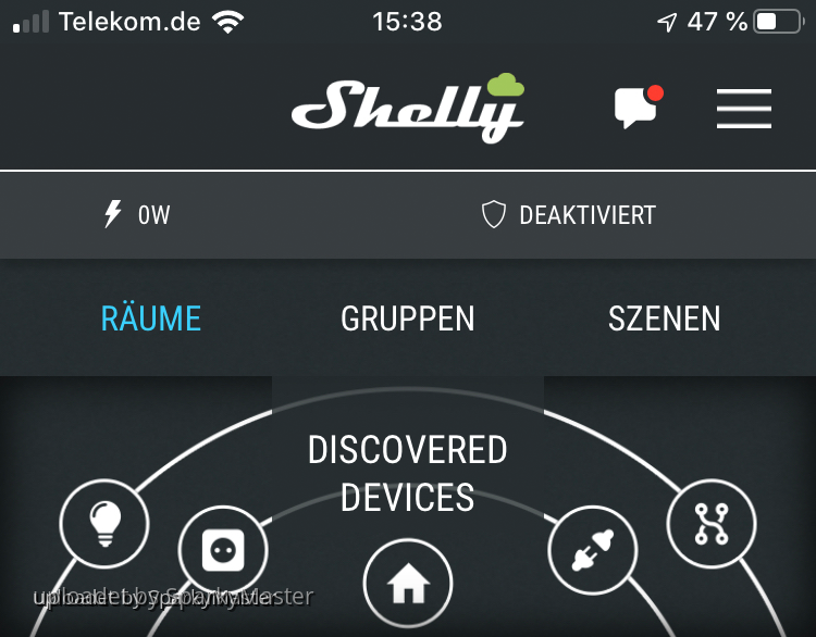 - die App erkennt automatisch neu eingebundene Shelly-Geräte -> DISCOVERED DEVICES