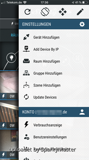 - Falls ein Shelly-Gerät einmal bearbeitet werden sollte, d.h. Gerätenamen verändern, einem anderen Raum zuordnen, Bilder ändern/anpassen, ..., wenn's sein muss auch Löschen, dann erfolgt dies über das App-Menü -> die 3 Striche oben rechts