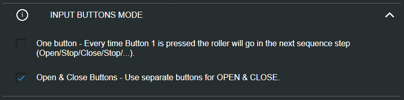 Open & Close Buttons - two separately buttons / switches each direction (UP / DOWN)