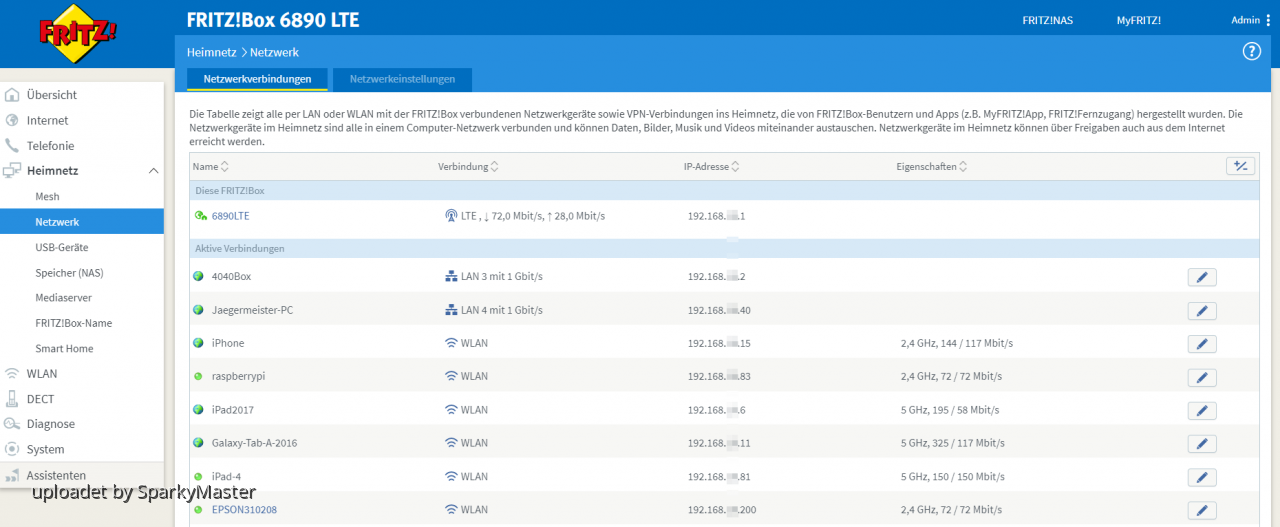 - in der Übersicht des Netzwerkes sind alle verbundenen LAN- und WLAN-Geräte aufgelistet