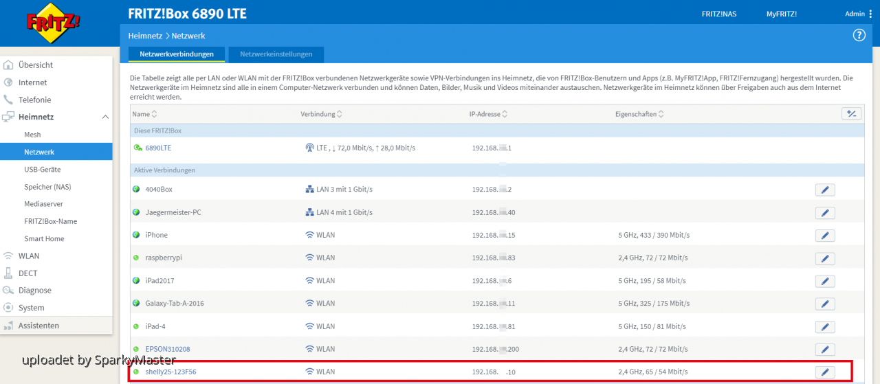 Ist der Shelly gelistet sollte die Weboberfläche des Routers so aussehen: