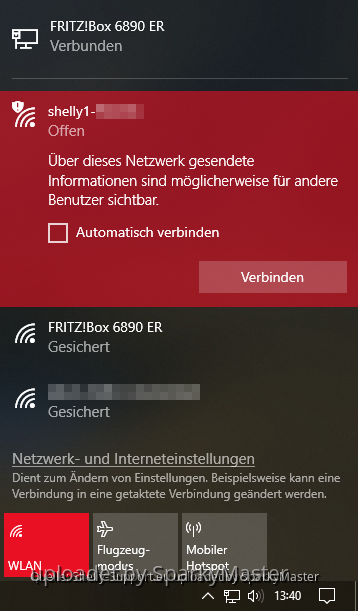 Der Shelly baut sein eigenes WLAN-Netz auf und dies wird in den Netzwerkverbindungen angezeigt.