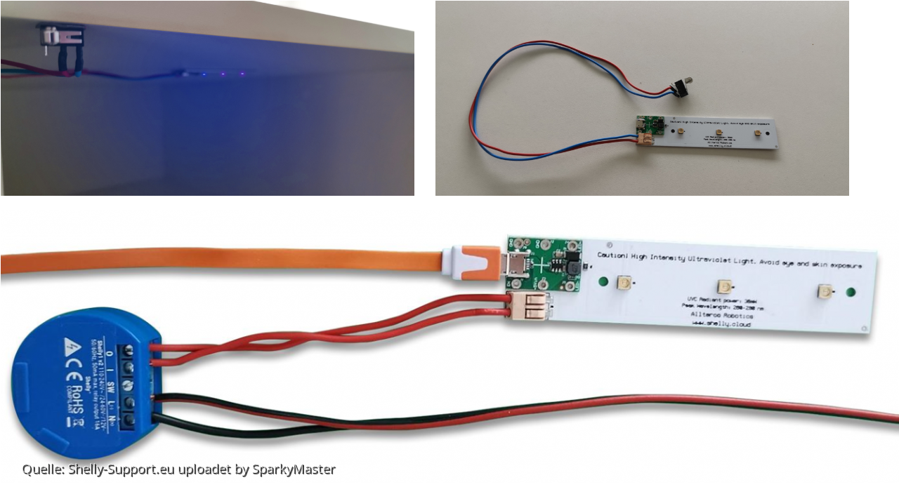 UV-C-Strahlen sind schädlich für das menschliche Auge und den Körper. Aus diesem Grund haben wir einen Anschluss für Kabel oder drahtlose Steuerung integriert, damit Sie den Streifen aus der Ferne aktivieren können, ohne dass Sie sich im Raum befinden oder spezielle Schutzausrüstung tragen müssen. Sie können Ihrem UV-C-LED-Strip auch einen Shelly 1 hinzufügen, um die Arbeitszeit einfach zu steuern und ihn von überall aus ein- und auszuschalten.