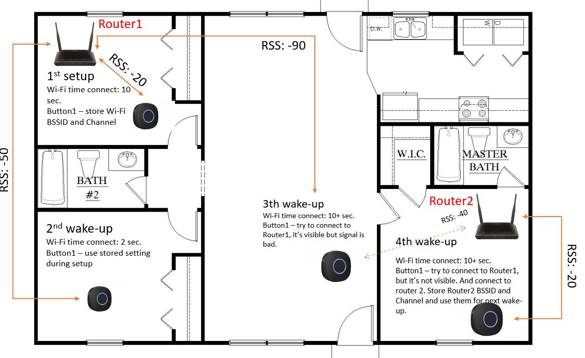 Es gibt 2 Möglichkeiten, sich mit dem Wi-Fi-Netzwerk zu verbinden. Die Standardmethode besteht darin, alle Kanäle zu scannen und das stärkste Signal zu finden, wenn mehrere Access Points (APs) vorhanden sind. Dies dauert normalerweise etwa 6-10 Sekunden.