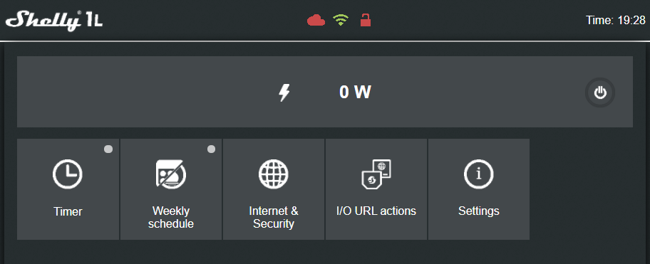 Timer / Weekly Schedule / Internet & Security / Settings (allg.) siehe: Einstellungen im Shelly-Hauptmenü