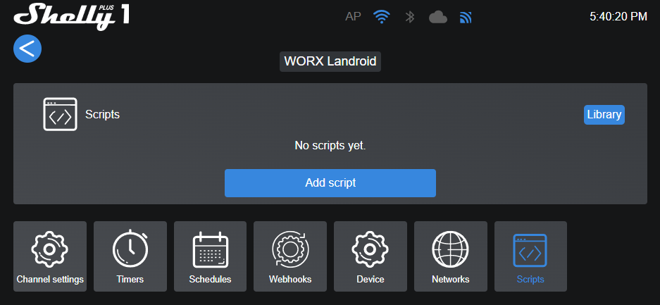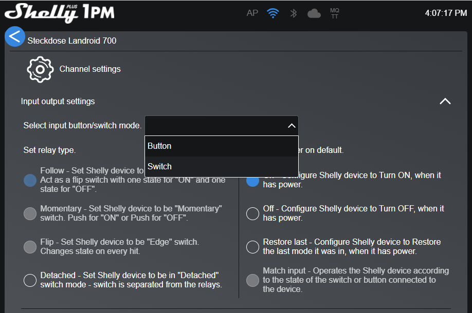 Einstellungen im Shelly-PLUS/PRO-Hauptmenü