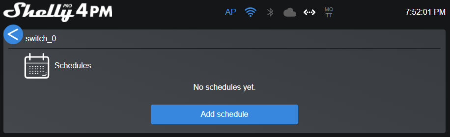 Das Shelly-Gerät kann zu einem bestimmten Zeitpunkt automatisch ein- und ausgeschaltet werden. Diese Funktion funktioniert nur, wenn eine Internetverbindung besteht und Shelly die Uhrzeit synchronisieren konnte.