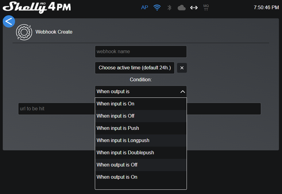 - When output is Off: Wenn Ausgang AUS -> Ausführung URL