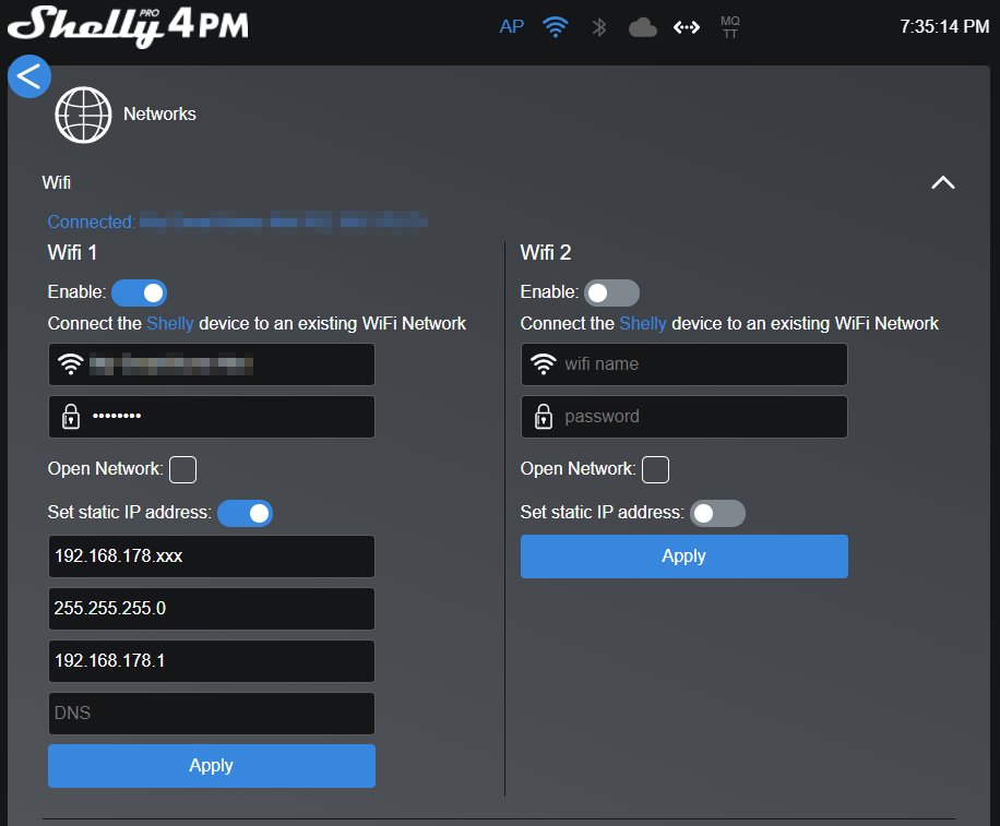 - Dazu den Shelly als Access Point konfigurieren, eigene SSID und Passwort vergeben.