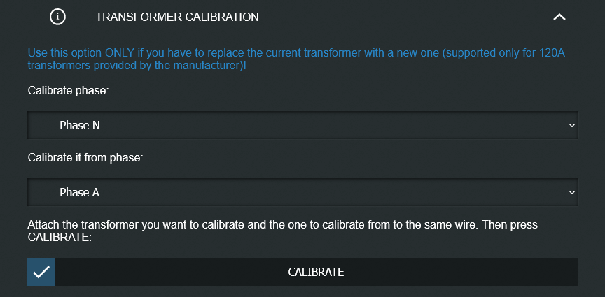 2. In the WEB-UI under Settings -> Transformer choose Calibration Calibrate phase: N -> Calibrate it from phase: A