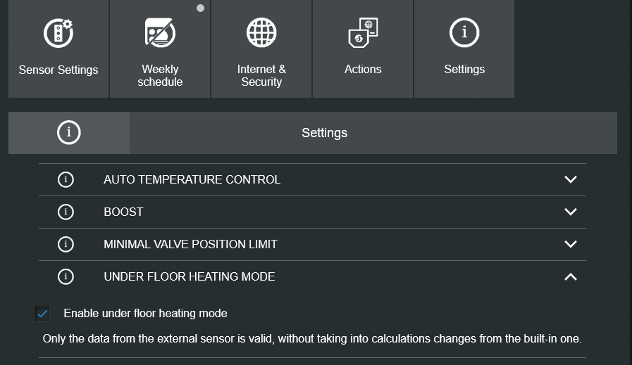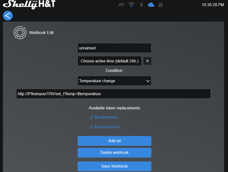 Settings in the TRV (App/home.shelly.cloud):