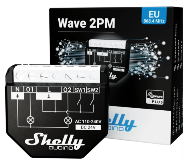 Z-WaveTM Smart Switch, 2 Kanal je 10 A (gesamt 16 A), mit Leistungsmessung -> Shelly Qubino Wave 2PM