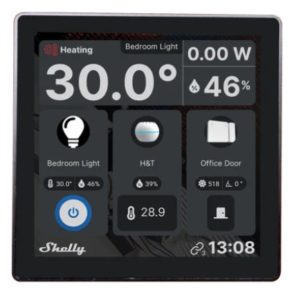 Das Shelly Wall Display ist ein hochentwickeltes 4-Zoll-Display, das intuitive Steuerung und nahtlose Überwachung in jeden Winkel Ihres intelligenten Zuhauses bringt. Verabschieden Sie sich von Ihren gewöhnlichen Schaltern - jetzt können Sie Ihre Geräte mühelos mit einer einfachen Berührung ein- und ausschalten. Ganz gleich, ob Sie das Licht dimmen, die Raumatmosphäre anpassen oder für optimale Energieeffizienz sorgen möchten - mit diesem intelligenten Bedienfeld wird die Verwaltung Ihres Zuhauses ganz einfach. Der hochgradig anpassbare Startbildschirm spiegelt Ihre Vorlieben wider und bietet einen schnellen Überblick über wichtige Smart Home-Details wie Temperatur, Luftfeuchtigkeit und Stromverbrauch des Raums. Außerdem verfügt es über einen eingebauten 5A-Schalter, der kinderleicht zu bedienen ist; ein kurzes Antippen mit zwei Fingern genügt, um es ein- oder auszuschalten, ohne dass Sie nachschauen müssen.