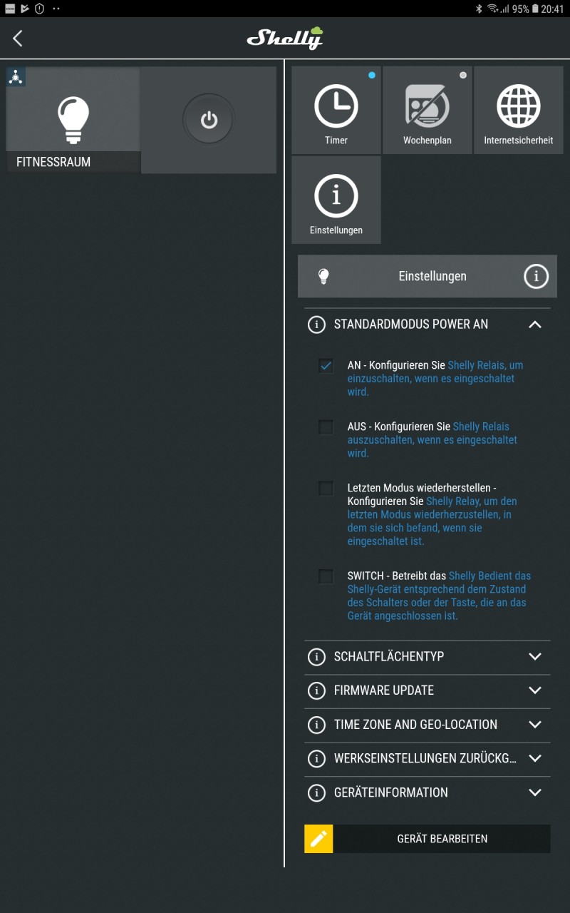 The "old" switch serves in this application, on the one hand, the shutdown and the reset of the Shelly.