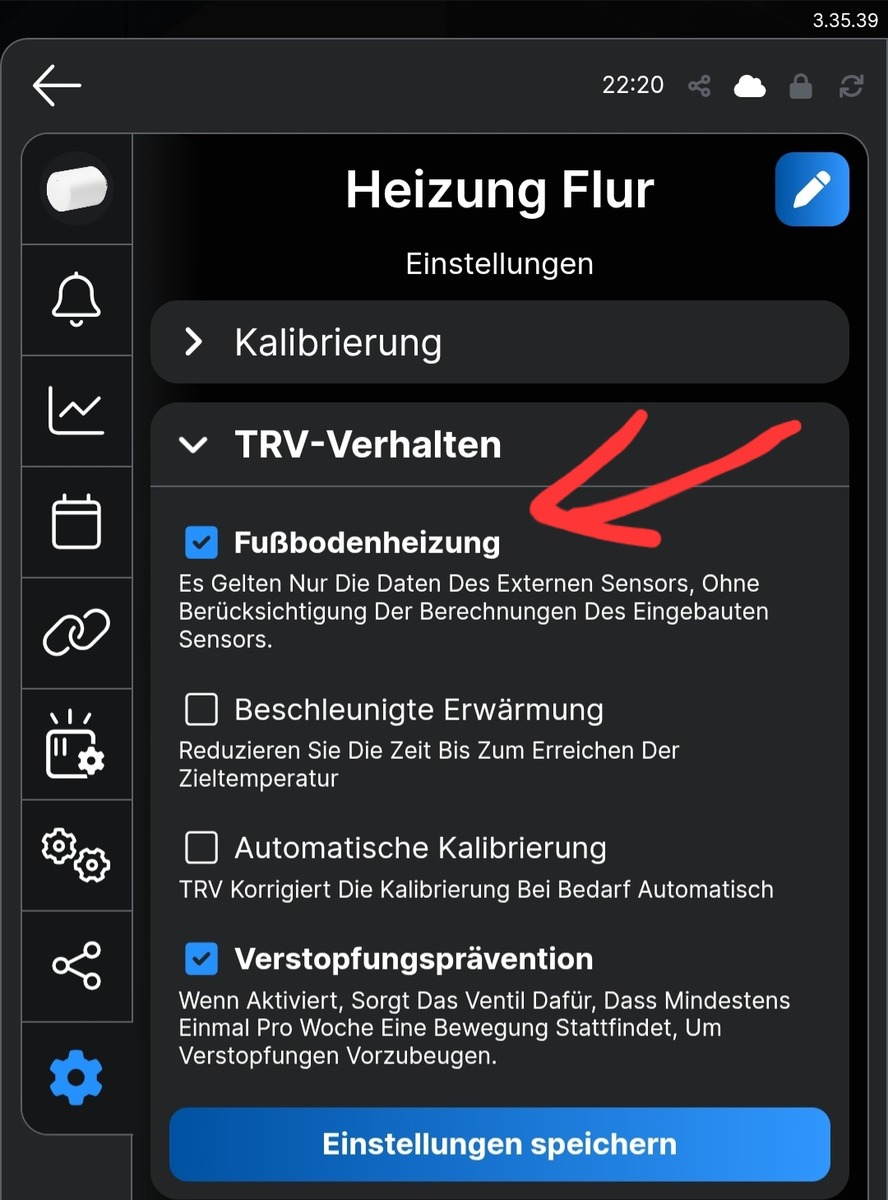 4. Im letzten Schritt aktivieren Sie die Funktion „Fußbodenheizung“ :