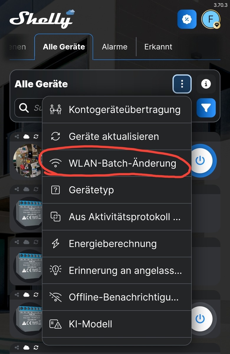 Gehen Sie zu Alle Geräte → tippen Sie auf die drei Punkte (⋮) in der Ecke → wählen Sie WLAN-Batch-Änderung .