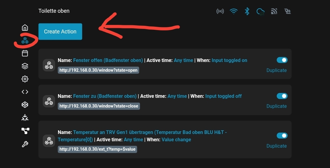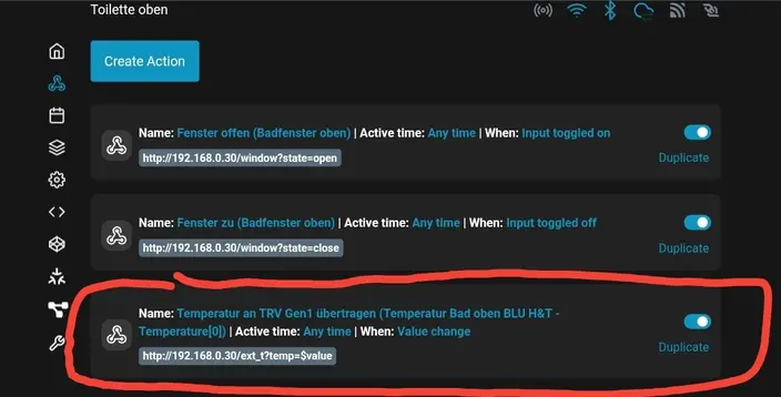 Danach müsst ihr eine Action erstellen für euren Shelly BLU H&T.