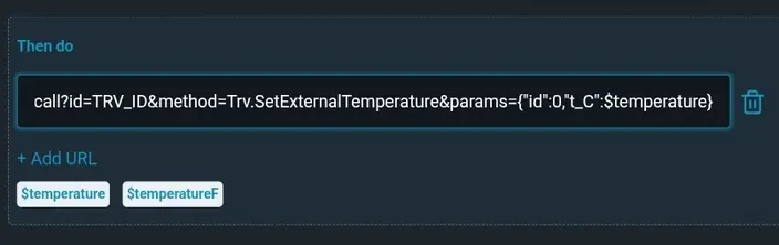(Wenn ihr auf mehrere Shelly BLU TRV die Temperatur des H&T übertragen möchtet, erstellt über +Add URL einen weiteren URL Befehl mit entsprechender TRV_ID.)