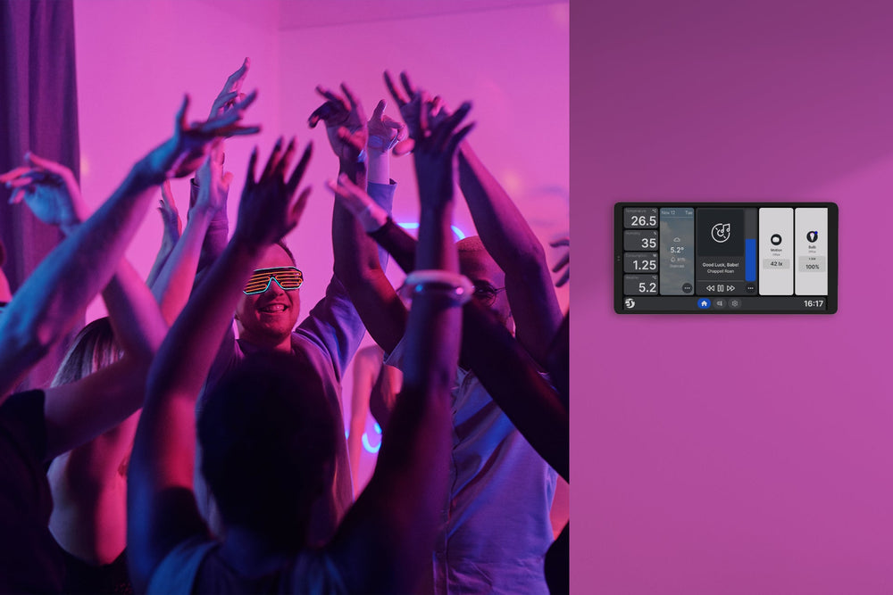 Verbinde Deine Bluetooth- oder Sonos-Lautsprecher mit dem Wall Display X2i für eine umfassende Audiosteuerung.
