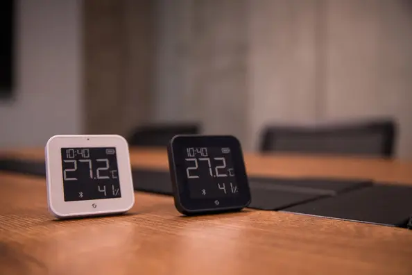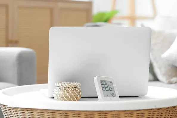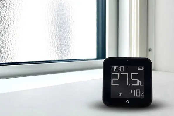 Platziere das Shelly BLU H&T Display ZB im Wohnzimmer, Schlafzimmer oder Büro, um Temperatur-, Feuchtigkeits- und Helligkeitswerte in Echtzeit anzuzeigen – ganz ohne App oder Kopplung.