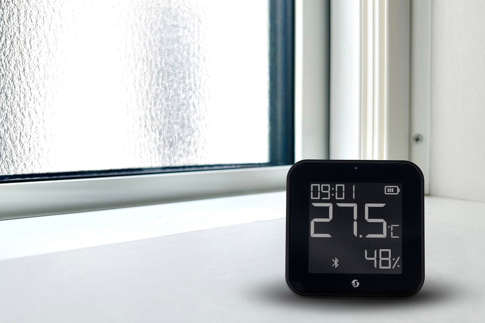 Ultrakompakt: Der weltweit schlankeste Sensor mit Display für Temperatur, Luftfeuchtigkeit und Licht.
