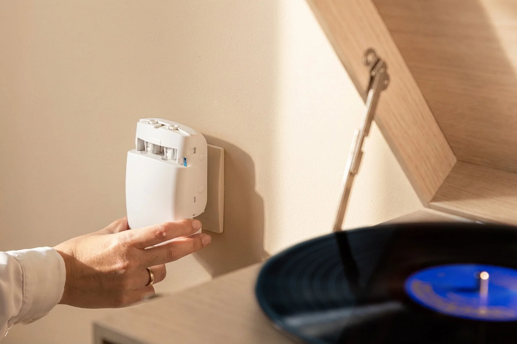 Stelle über die Shelly Smart Control App ein, dass der Cury Smart-Diffusor automatisch pausiert, sobald ein Shelly BLU Door/Window -Sensor ein offenes Fenster oder eine offene Tür erkennt und optimiere so den Verbrauch der Duftstoffe. Schluss mit Verschwendung – die Effizienz bleibt aber bestehen. Im Sommer schaltet dasselbe Set-up den Cury automatisch auf das Fläschchen mit Mückenschutz um, sobald der Shelly BLU Door/Window - Sensor einen offenen Zugang registriert, um Dich vor Stichen und der nächtlichen Mückenjagd zu bewahren.