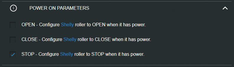 Konfiguration des Shelly bei Spannungswiederkehr, z.B. bei Inbetriebnahme, nach einem Netzausfall.