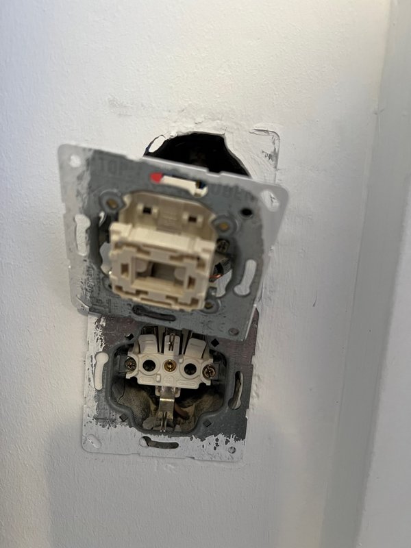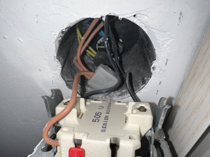 Anbei zwei Bilder der Verkabelung, am Schalter gibt es kein Neutralleiter. Also müsste ich den Shelly 1L nehmen? Benötige ich den Bypass, da LED Lampen verbaut sin?